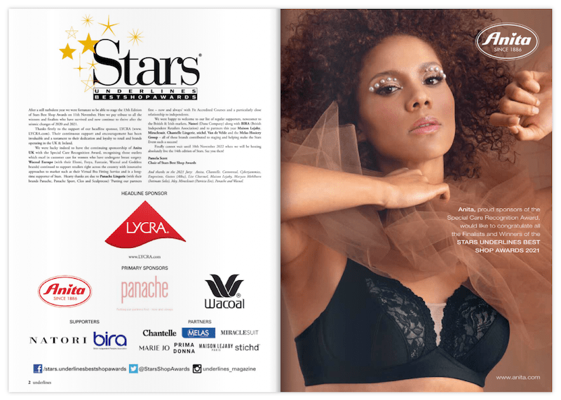 Underlines Magazine, organisers of Stars Best Shop Awards, are thrilled to announce this year’s winners in collaboration with headline sponsor, LYCRA® with other primary sponsors including Anita, Wacoal and Panache. Now in their 13th edition, Stars are the only independent recognition of excellence in the sectors of lingerie, swimwear, nightwear and legwear in the United Kingdom & Ireland.